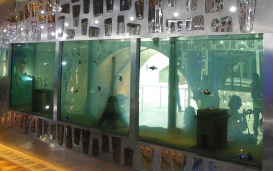 Two rooms were equipped by Robotswim products. In first room (Cristal room) you will see 30 robots swimming amongst some Paris monuments.