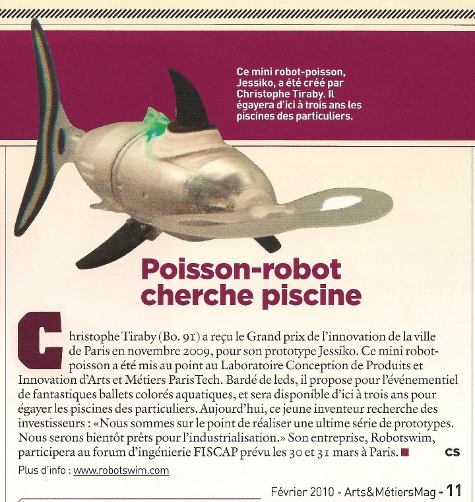 Christophe Tiraby presents Robotswim in the February 2010 issue of Arts&MétiersMag Arts&MétiersMag is the newspaper of the biggest engineers alumni network in Europe.