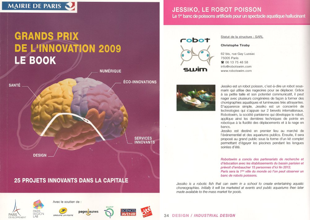 Robotswim in the book of "Great Prize for Innovation of Paris" Thanks to its award, Robotswim is in the book of the French contest "Grand Prix de l'Innovation de la Ville de Paris".  Click to enlarge...